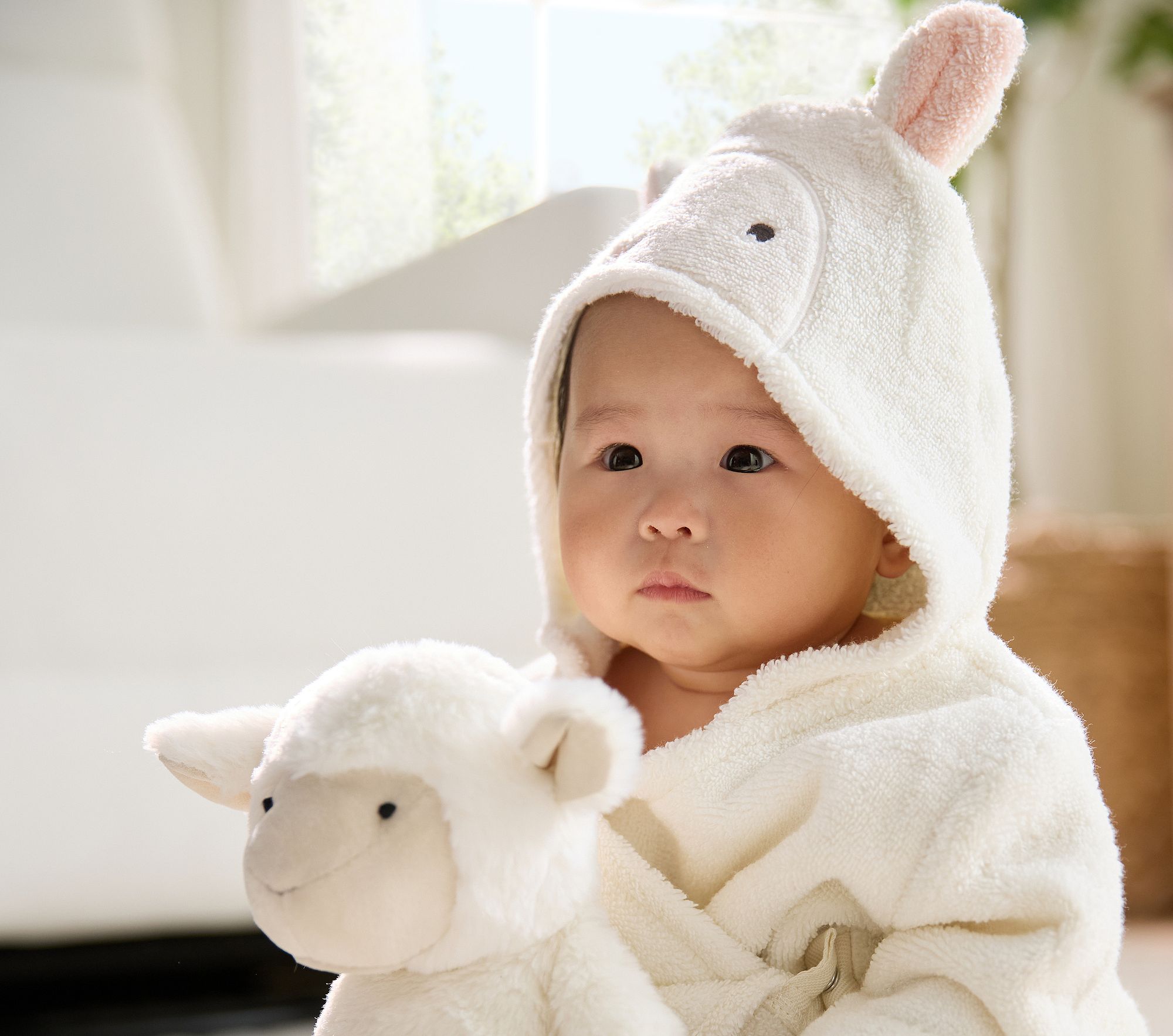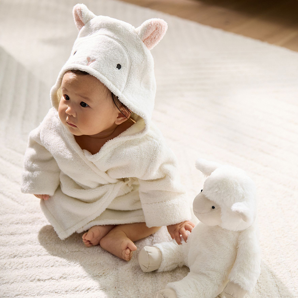 Engineered for post-bath thermal regulation and infant emotional comfort, our Lamb Character Hooded Bathrobes are a premium nursery and giftware essential. Combining a charming 3D character hood with high-density absorbent fabric, this bathrobe provides immediate warmth and a sense of security, transitioning seamlessly from bath time to relaxation. The signature "lamb ear" design and plush textures offer multi-sensory engagement, helping infants feel calm and cozy.