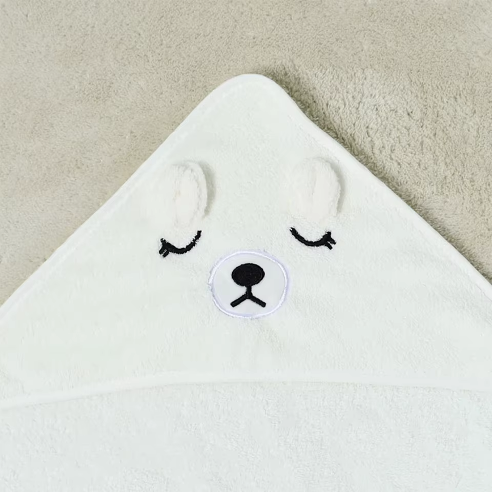 Designed for the ultimate post-bath soothing experience, our coral fleece hooded towel offers unparalleled softness and rapid moisture absorption. The high-density microfiber structure acts like a sponge, quickly drying infant skin while maintaining a luxurious, velvety touch. Featuring whimsical character hoods (Elephant, Kitty, Bear) with 3D ears and fine embroidery, this towel is a perfect functional addition to any premium nursery bath collection.