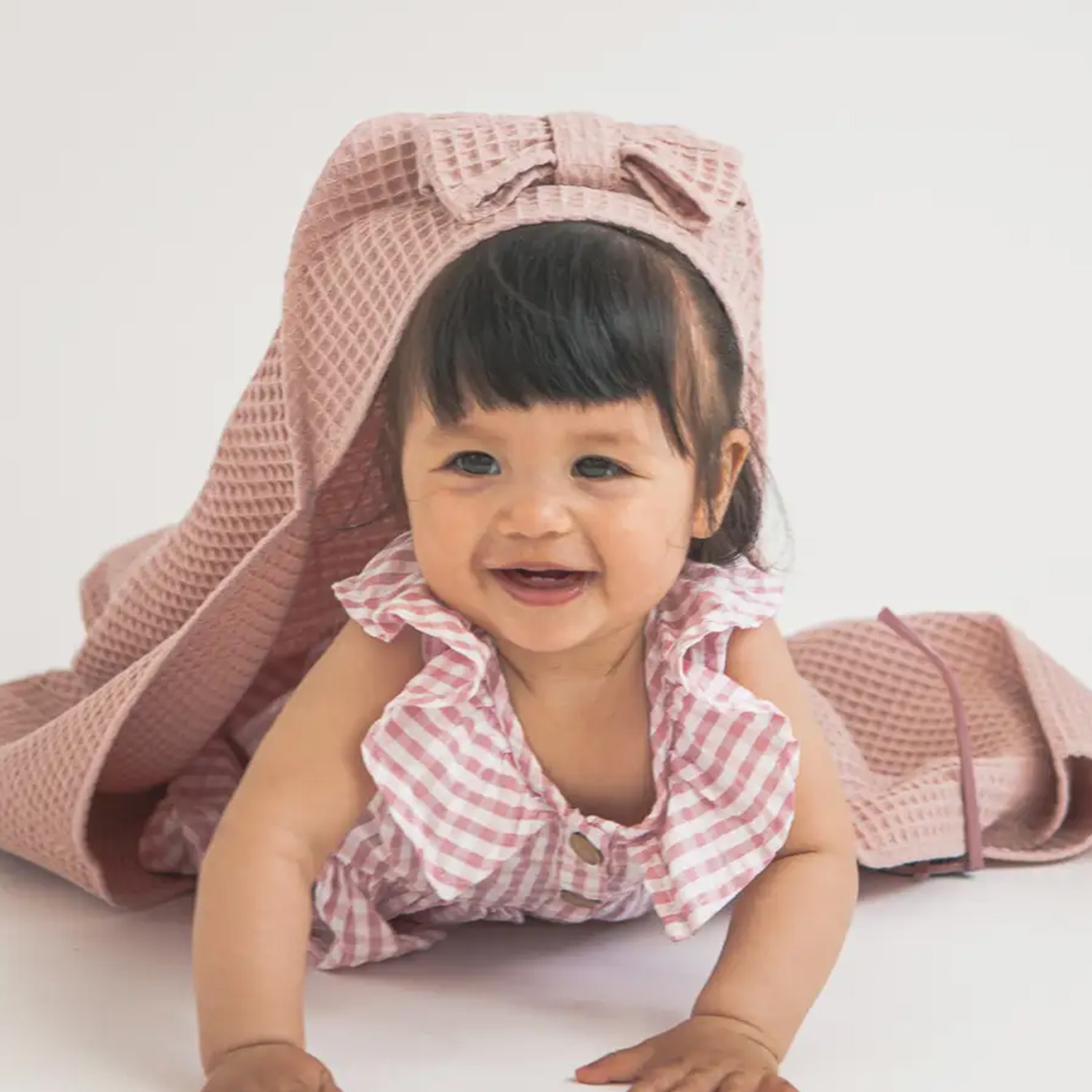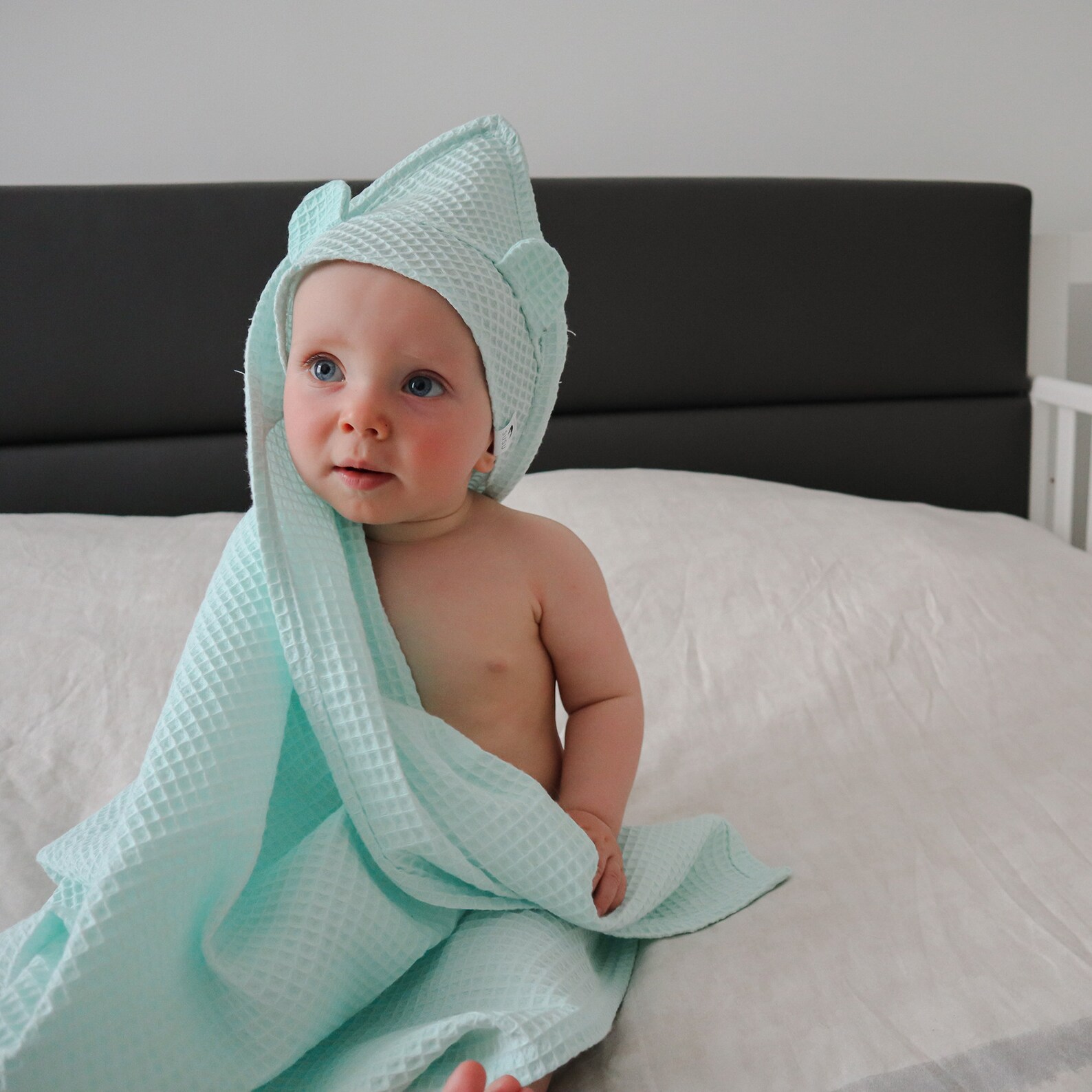 Elevate the post-bath ritual with our artisanal waffle-weave hooded towel. Crafted from 100% premium cotton, the sophisticated honeycomb texture creates a larger surface area for rapid moisture absorption while maintaining excellent airflow for quick drying. Featuring a chic integrated hood with optional bow or character accents, this towel offers a modern, minimalist aesthetic that fits perfectly into the boutique nursery market.