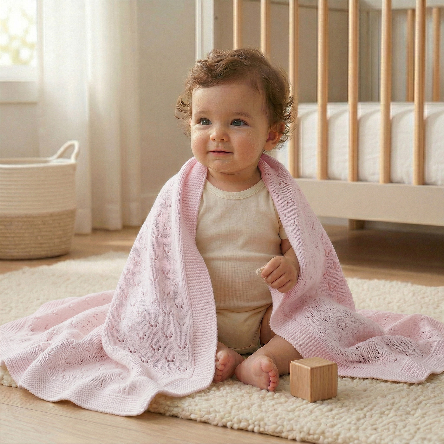 Engineered for modern parenting, our polyester knitted blankets combine delicate aesthetics with industrial-grade durability. Featuring an intricate pointelle "lace" pattern, these blankets offer a lightweight, airy texture that remains vibrant and wrinkle-free even after heavy use. Perfectly suited for busy families and large-scale retailers, this blanket provides a soft, hypoallergenic shield for infants while ensuring a low-maintenance, long-lasting product lifecycle.